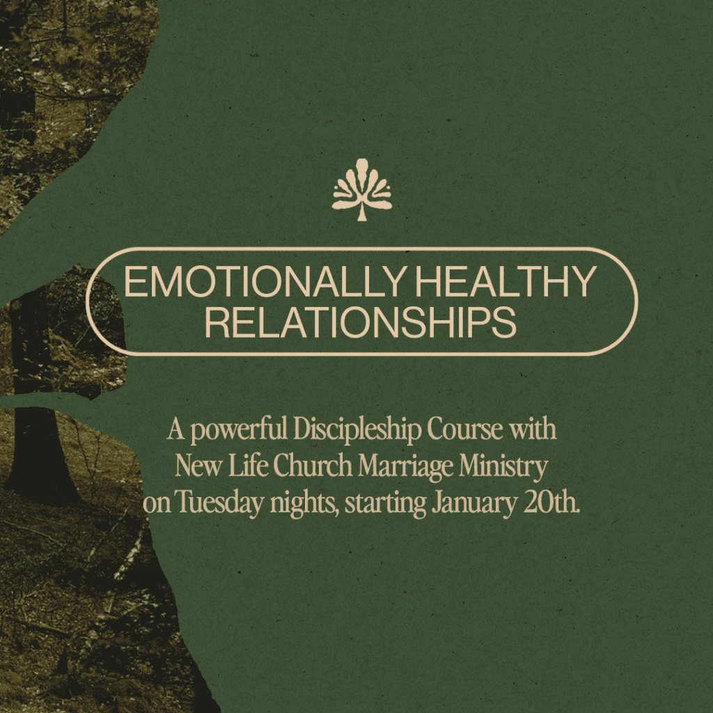 Kick off the New Year committed to building healthy relationship skills with your spouse. Starting January 20, 2026, New Life Marriage Ministry will host an eight-week couples discipleship course using the Emotionally Healthy Relationships (EHR) curriculum. The EHR curriculum introduces eight practical skills to help grow mature and loving relationships with others. We’ll meet Tuesday evenings, 6:30-8:30pm. Kids Ministry is available for all session dates.